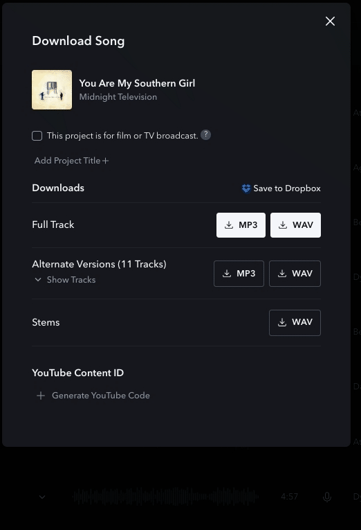 For each song used in a video, Pro and Pro Plus subscribers can generate a one-time use YouTube code and copy/paste it into the video’s description when you upload it to YouTube. Codes must be formatted and added in a single line of text: